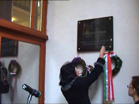 Emléktábla avatás a Rákóczi Gimnázium bejáratánál
