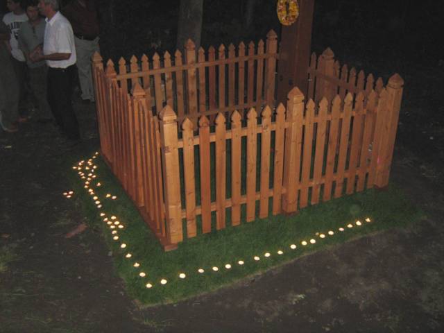 Az Emlékdomb és a kopjafa is sűrűn rakott fáklyák fényében bukkant elő. A dombon 365 nemzeti színű – a tavalyi „marék föld” hozói által megírva – lobogott a szélben, a dombot körülölelő fák adtak nemzet és PPKSZ lobogókat „tartották”, két „48’-as honvéd” – korhű egyenruhában – állt őrséget és nem hiányzott az „asztal” sem erdélyi terítővel borítva, rajta székelyek faragta háromágú gyertyatartóval.