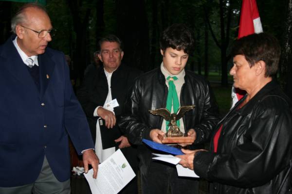 A tömegből elősorjáztak egymásután négy gyertyát  és négy tarisznyát tartva a kezükben. A „vakond” ajándékát, a tölcsérvirágot, amit a PPKSZ-nek hoztak, az Emlékkönyv asztalán hagyták, majd zászlócskákkal a dombhoz mentek.