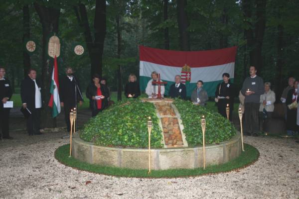 Létrehozták mindazt, amit itt látunk, s mellettünk a magyarság emlékdombját, felépítették a szabadtéri oltár tetőszerkezetét, és tekintélyt parancsoló torockói kopjafát állítottak. Úgy hiszem, ma ezzel a három jelképpel teljessé és világossá vált az üzenet, melyet Pesthidegkút küld az ország népének.