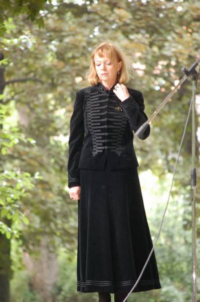 A harang elcsendesedése után Dr. Nagy Pál János tárogatósunk zenei kíséretével, Ferencz Éva Magyar Örökség Díjas énekművészünk vezetésével elénekeltük a Himnuszt.