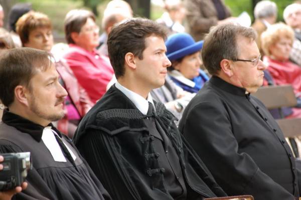 Engedjék meg, hogy az előbb elhangzott rövid köszöntő egyik felém irányított mondatát hárítsam tovább „fölfelé”, előbb köszönetet hallhattunk a kerület képviselőjétől, mert Széchenyi Terv támogatása is hozzájárult ahhoz, hogy  a mai nap egy közös találkozás napjává vállhatott. Elhárítom magamtól ezt a dicséretet és köszönetet és csak annyit mondok mindannyiuknak, hogy: „Soli Deo Glória!  Egyedül Istené a dicsőség! –taps.