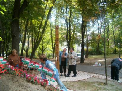 Evelyn és Kinga, (tavaly is ők csinálták) szorgalmasan írták a helységek neveit és adták oda Jánosnak: „Nyugdíjas Polgári Kör” XII. kerület, Rákoscsaba-i Polgári Kör, Tárogató út II. kerület, Angyal T. A. XI. kerület, Bélafalva, Háromszék, Kurdi Jánosné,  Tabán, Lenkei utca, Erdőcsinád, Torontál, IX. kerület, Torockó, Vadaskerti út, Felsőzsolca, „A jövőnkért Polgári Kör” Budakeszi, Philadelphia- USA, Budagyöngye – Pasarét, Marosvásárhely, Pestszentlőrinc, Kútvölgyi Polgári Kör és még 11 db „névtelen” zászló, amit az Emlékdombba szúrtak.