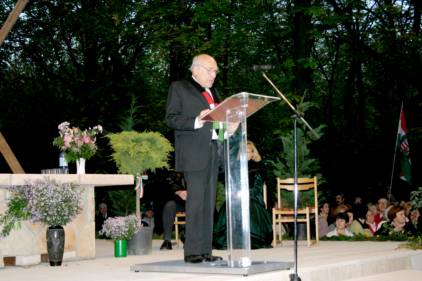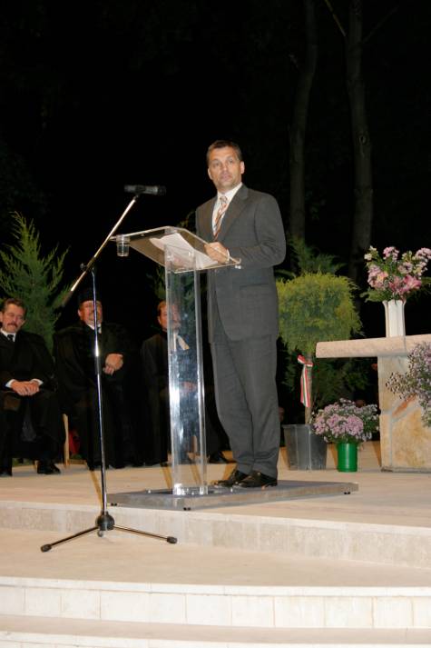 Régi, mondhatnám Önöknek, hogy tankönyv ízű retorikai tanács, hogy beszédet soha se kezdj magyarázkodó mondatokkal. Mégis most rákényszerülök erre. Két összeegyezhetetlen elvárással kell most szembenéznem, ünnepelni jöttünk össze, ezért egy ünnepi beszéddel szeretném megtisztelni Önöket, de nem lenne őszinte ez a találkozó, ha az ország mai, korábban még nem ismert furcsa és szokatlan helyzetéről nem váltanánk egymással néhány szót. Már pedig a kettő együtt nem fog menni. Legfeljebb egymás után – nevetés – ezért, ha megengedik, először elmondanám az ünnepinek szánt gondolataimat és utána, ha megengedik és van még kitartó türelmük, és nem érzik a hely szellemével ellentételesnek, mondanék néhány gondolatot arról is, hogy miképpen látom most mindannyiunk közös helyzetét. Nos, először is engedjék meg, hogy megköszönjem a pesthidegkútiaknak, hogy ismét bebizonyították mindannyiunknak, mekkora erő is lakozik sok ezer ember összefogásában, hiszen semmilyen kormányzati akarat, semmilyen hatalmi szó sem elegendő ahhoz - önmagában még a Széchenyi-terv nyújtotta támogatás és biztatás sem -, ami itt, Máriaremetén megvalósult az Önök munkájának és önzetlen adakozásának köszönhetően.