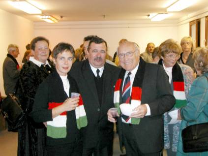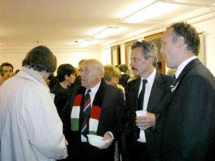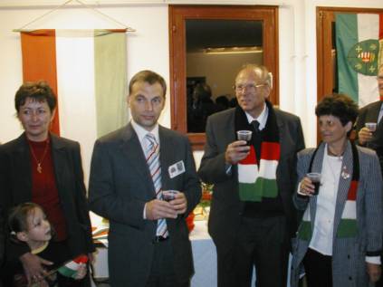 Most érkezünk meg egymás után, a hihetetlen hangzavar elnyomja Jablonkay Gábor „Isten hozta a Miniszterelnök Urat nálunk” kiáltását, Duray család, Bánffy család, Kerényi család sorra érkeznek meg, itt vannak körünkben Bíró Ildikóék (Budakeszi) és Koltay család és jönnek a PPKSZ tagjai is –stílszerűen a tárogatósunk Nagy Pál János az „élen”, de az újságírószakma is képviseli magát Bercsi Kati (Fényhíd–Internetes Újság), Kántor Yvette (Demokrata) kisleányával, a győriek és még sokan tódulnak be … elnézést, akit nem említettem.