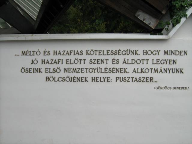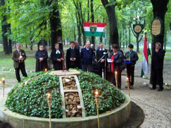 Létrehozták mindazt, amit itt látunk, s mellettünk a magyarság emlékdombját, felépítették a szabadtéri oltár tetőszerkezetét, és tekintélyt parancsoló torockói kopjafát állítottak. Úgy hiszem, ma ezzel a három jelképpel teljessé és világossá vált az üzenet, melyet Pesthidegkút küld az ország népének.