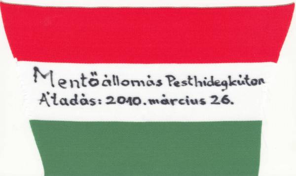 Evelyn és Kinga, (tavaly is ők csinálták) szorgalmasan írták a helységek neveit és adták oda Jánosnak: „Nyugdíjas Polgári Kör” XII. kerület, Rákoscsaba-i Polgári Kör, Tárogató út II. kerület, Angyal T. A. XI. kerület, Bélafalva, Háromszék, Kurdi Jánosné,  Tabán, Lenkei utca, Erdőcsinád, Torontál, IX. kerület, Torockó, Vadaskerti út, Felsőzsolca, „A jövőnkért Polgári Kör” Budakeszi, Philadelphia- USA, Budagyöngye – Pasarét, Marosvásárhely, Pestszentlőrinc, Kútvölgyi Polgári Kör és még 11 db „névtelen” zászló, amit az Emlékdombba szúrtak.