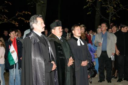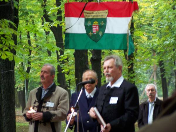 Most pedig tisztelettel kérem a polgári körök tárogatósának Nagy Pál Jánosnak a vezetésével, a kórust, vonuljunk át az Emlékdombhoz, a kórust kövessék a Nagytiszteletű Uramék, az egyházak képviselői, utána pedig a vendégek,  át valamennyien, hogy tudjuk befejezni aztán a Szózattal és a Székely Himnusszal a mai találkozónkat.
