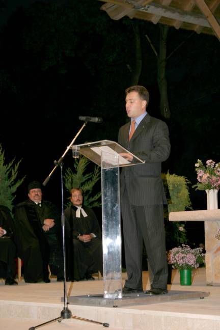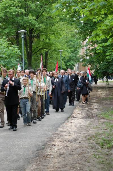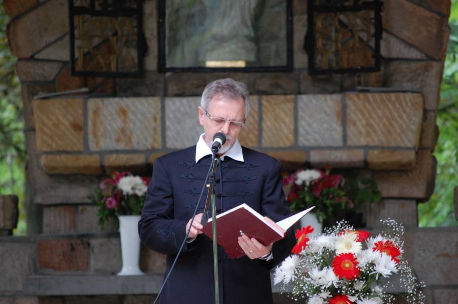 Engedjék meg, hogy az előbb elhangzott rövid köszöntő egyik felém irányított mondatát hárítsam tovább „fölfelé”, előbb köszönetet hallhattunk a kerület képviselőjétől, mert Széchenyi Terv támogatása is hozzájárult ahhoz, hogy  a mai nap egy közös találkozás napjává vállhatott. Elhárítom magamtól ezt a dicséretet és köszönetet és csak annyit mondok mindannyiuknak, hogy: „Soli Deo Glória!  Egyedül Istené a dicsőség! –taps.