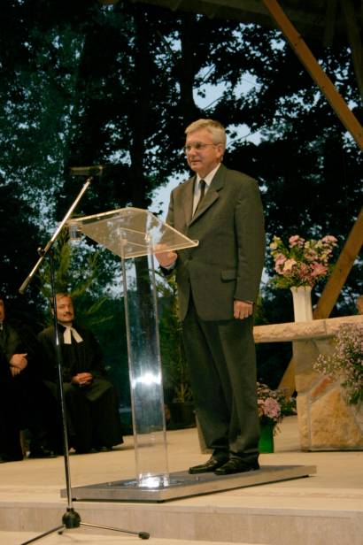 Régi, mondhatnám Önöknek, hogy tankönyv ízű retorikai tanács, hogy beszédet soha se kezdj magyarázkodó mondatokkal. Mégis most rákényszerülök erre. Két összeegyezhetetlen elvárással kell most szembenéznem, ünnepelni jöttünk össze, ezért egy ünnepi beszéddel szeretném megtisztelni Önöket, de nem lenne őszinte ez a találkozó, ha az ország mai, korábban még nem ismert furcsa és szokatlan helyzetéről nem váltanánk egymással néhány szót. Már pedig a kettő együtt nem fog menni. Legfeljebb egymás után – nevetés – ezért, ha megengedik, először elmondanám az ünnepinek szánt gondolataimat és utána, ha megengedik és van még kitartó türelmük, és nem érzik a hely szellemével ellentételesnek, mondanék néhány gondolatot arról is, hogy miképpen látom most mindannyiunk közös helyzetét. Nos, először is engedjék meg, hogy megköszönjem a pesthidegkútiaknak, hogy ismét bebizonyították mindannyiunknak, mekkora erő is lakozik sok ezer ember összefogásában, hiszen semmilyen kormányzati akarat, semmilyen hatalmi szó sem elegendő ahhoz - önmagában még a Széchenyi-terv nyújtotta támogatás és biztatás sem -, ami itt, Máriaremetén megvalósult az Önök munkájának és önzetlen adakozásának köszönhetően.