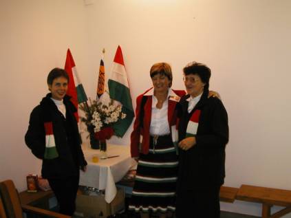 A beszámoló elején említettem, hogy Tercsikének (aki egyedül oldotta meg a teljes „traktát” – köszönjük!) segített a Cserkészház feldíszítésében Kriszta és Kati. Az eredeti szándék az volt, hogy az ünnepi műsorban fellépő művészeknek, előadóknak a sikeres szereplését megköszönjük egy kis „vendéglátással” és „ha már”, mi az ünnepség PPKSZ szervezői egyúttal „előre akartunk inni a medve bőrére”…