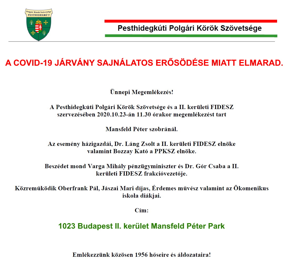 ÉVI MEGEMLÉKEZÉS az 1956-OS FORRADALOM ÉS SZABADSÁGHARC ÉVFORDULÓJÁRÓL