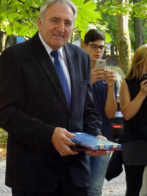 Szlovák Gyula átveszi a kitüntetést a PPKSZ elnökétől